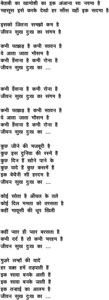 betaabii kaa ... jiivan sukh duHkh kaa sa.ngam hai