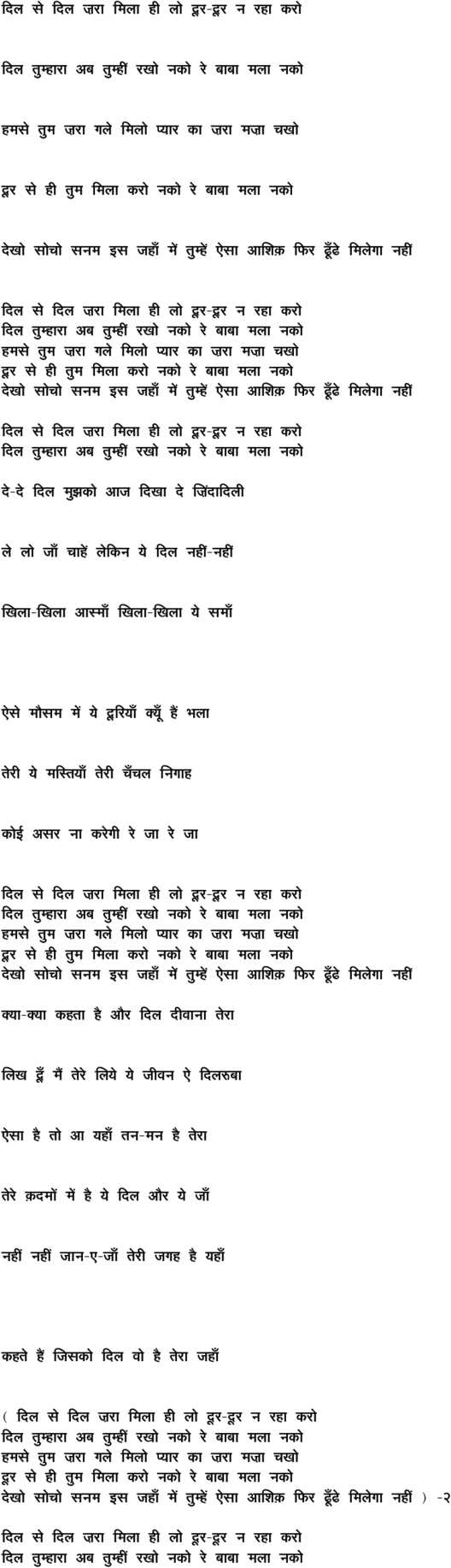 dil se dil zaraa milaa hii lo duur\-duur na rahaa karo