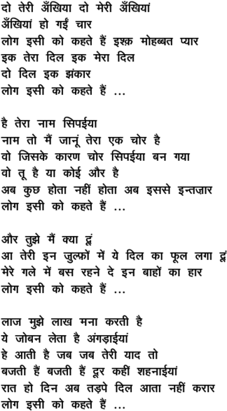 do terii akhiyaa.N ... log isii ko kahate hai.n ishq mohabbat pyaar