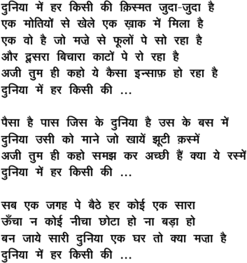 duniyaa me.n har kisii kii
