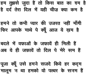 ham tujhase judaa hai.n to kis baat kaa Gam hai - - M Kumar