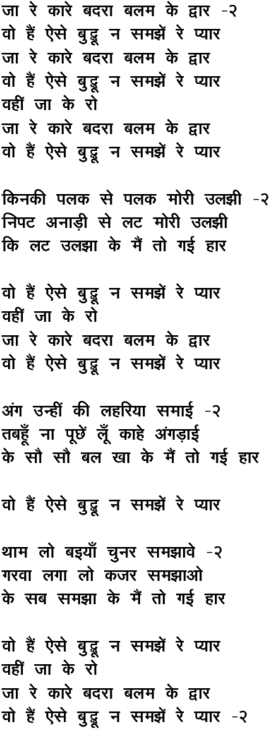 jaa re kaare badaraa balam ke dwaar