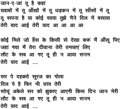 jaan\-e\-jaa.n tuu hai kahaa.n ... terii yaad aa_ii terii yaad