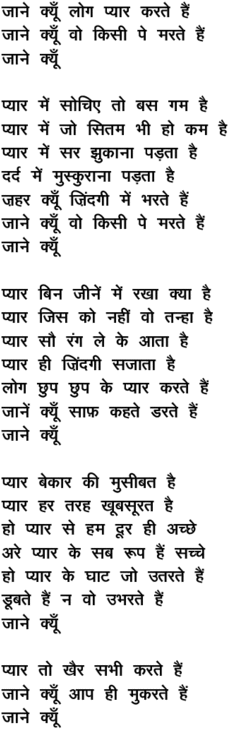jaane kyuu.N log pyaar karate hai.n