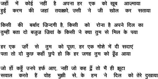 jahaa.N me.n ko_ii nahii.n hai apanaa - - Talat