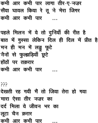 kabhii aar kabhii paar laagaa tiir\-e\-nazar