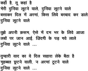 kahaa.N hai, tuu kahaa.N hai merii duniyaa luuTane vaale