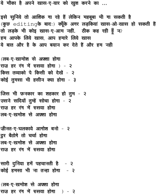 - Lyricist: Ahmed Nadeem Qasmi