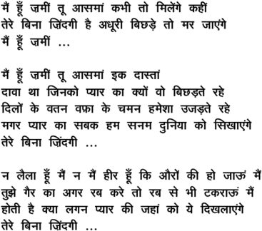mai.n huu.N zamii.n tuu aasamaa.n ... tere binaa zi.ndagii hai adhuurii