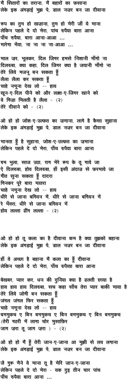 mai.n sitaaro.n kaa taraanaa ... paa.Nch rupa_iyyaa baaraa aanaa