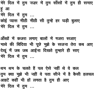 mere dil me.n tum nazar me.n tum