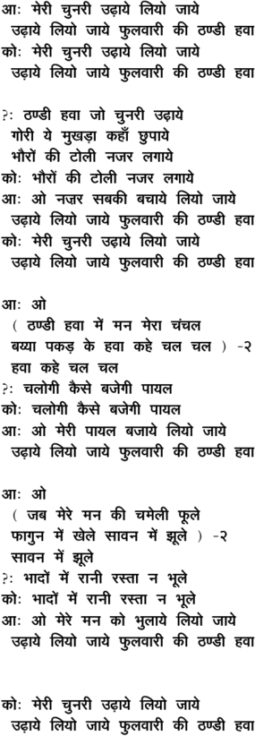 - Singer(s): Chorus, Asha Bhonsle, Female Voice?