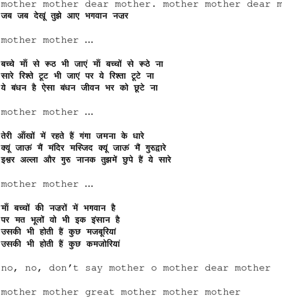 ##mother mother dear mother## ... jab jab dekhuu.n tujhe