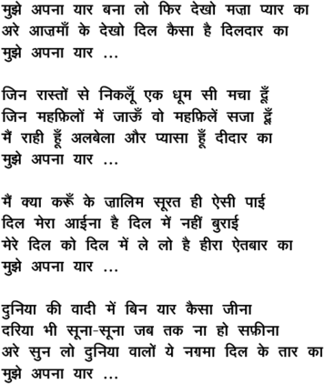 mujhe apanaa yaar banaa lo phir dekho mazaa pyaar kaa