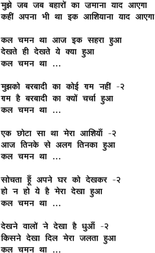 mujhe jab jab bahaaro.n ... kal chaman thaa