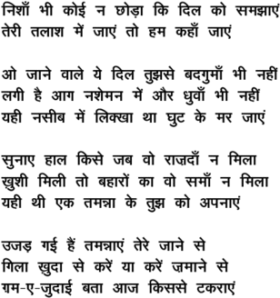 nishaa.N bhii ko_ii na chho.Daa ki dil ko samajhaa_e.n - - Mehdi Hasan