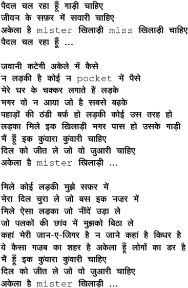 paidal chal rahaa huu.N ... akelaa hai ##mister## khilaa.Dii
