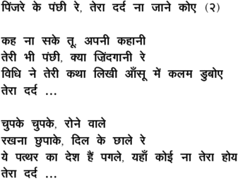 pi.njare ke pa.nchhii re, teraa dard na jaane koe