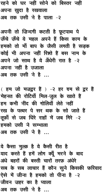rahane ko ghar nahii.n ... ab tak usii ne hai paalaa