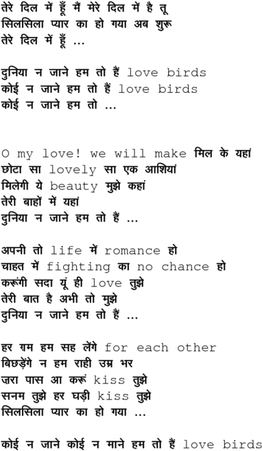 tere dil me.n huu.N mai.n ... ham to hai.n ##love birds##