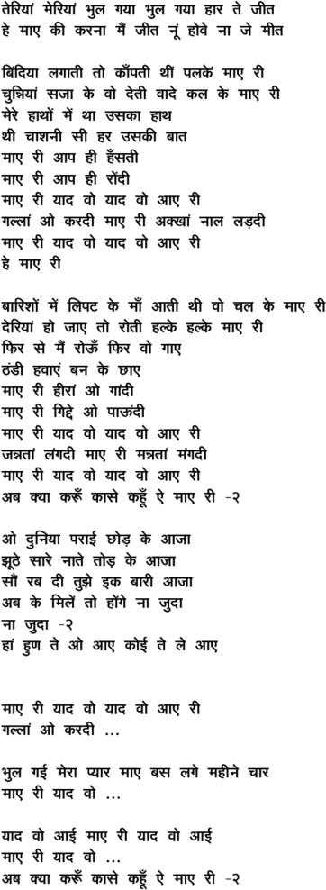 teriyaa.n meriyaa.n bhul gayaa ... maa_e rii