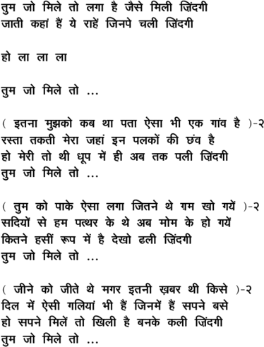 tum jo mile to lagaa hai jaise milii zi.ndagii