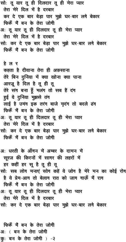 tuu yaar tuu hii diladaar tuu hii meraa pyaar