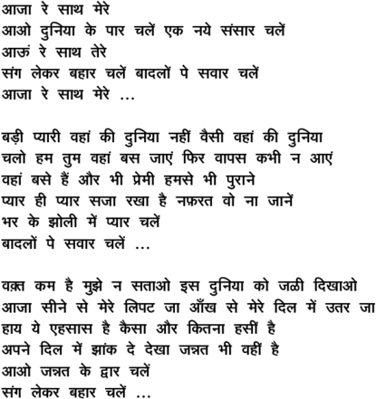 aa jaa re saath mere ... aa_o duniyaa ke paar chale.n