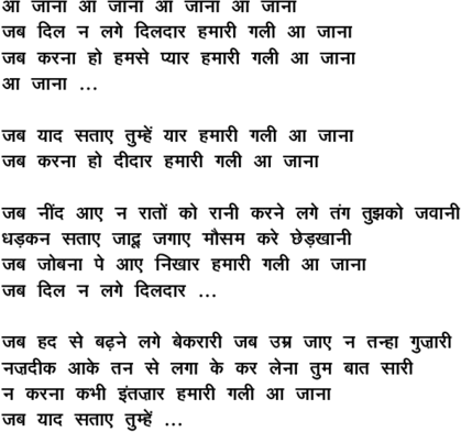 aa jaanaa ... jab dil na lage diladaar hamaarii galii