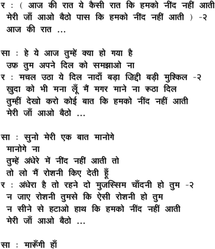 aaj kii raat ye kaisii raat ki hamako nii.nd nahii.n aatii