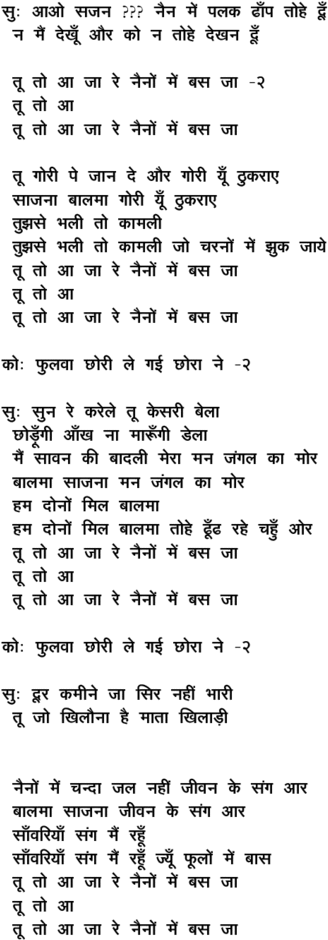 aa_o sajan ... tuu to aa jaa re naino.n me.n bas jaa
