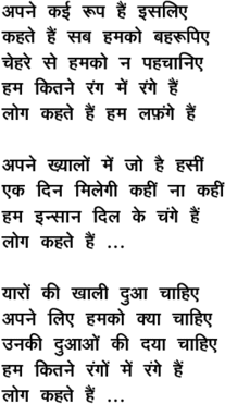 apane ka_ii ruup hai.n ... log kahate hai.n ham lafa.nge hai.n