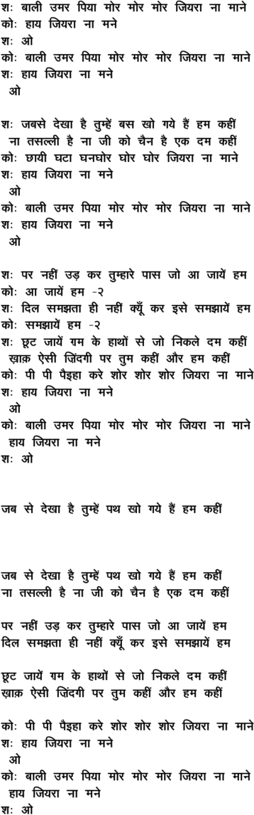 baalii umar piyaa mor mor mor ... jab se dekhaa hai tumhe.n