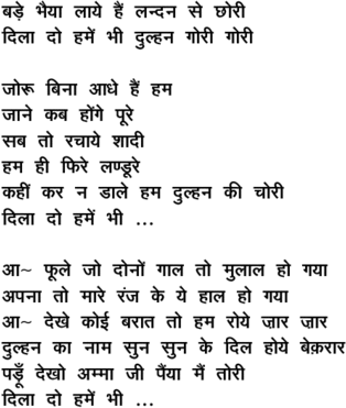 ba.De bhaiyaa laaye hai.n ... dilaa do hame.n bhii dulhan gorii gorii
