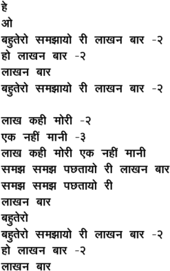 bahutero samajhaayo rii laakhan baar