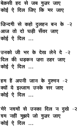 - Lyricist: Jaan Nisar Akhtar