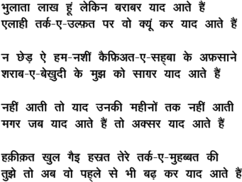 bhulaataa laakh huu.n lekin baraabar yaad aate hai.n - - Mujaddad Niazi