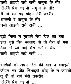 chalii aa_iyo raadhe raanii jamanaa ke tiir