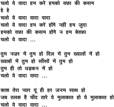 chalo ye vaadaa ham kare.n hamako vafaa kii kasam