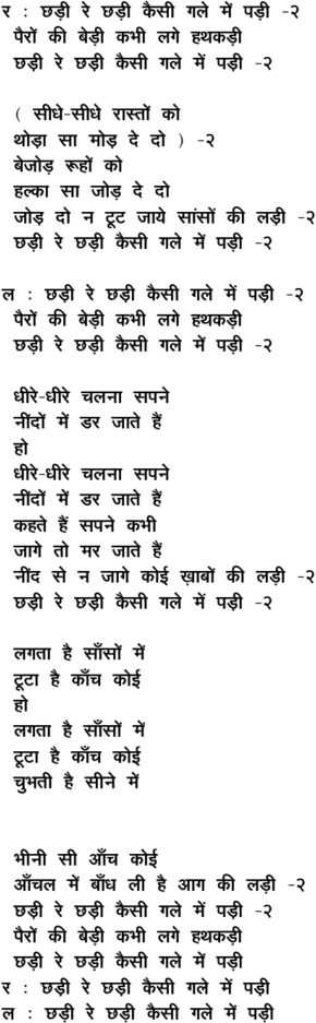 chha.Dii re chha.Dii kaisii gale me.n pa.Dii