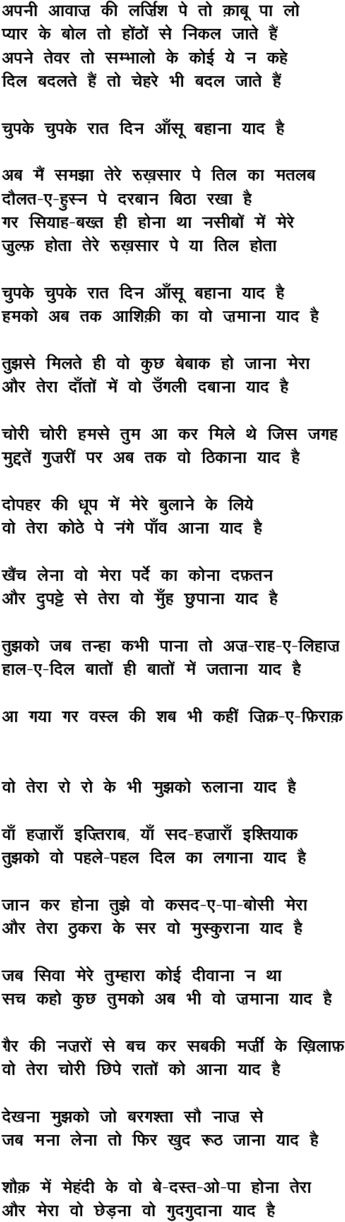 chupake chupake raat din aa.Nsuu bahaanaa yaad hai - Ghulam Ali