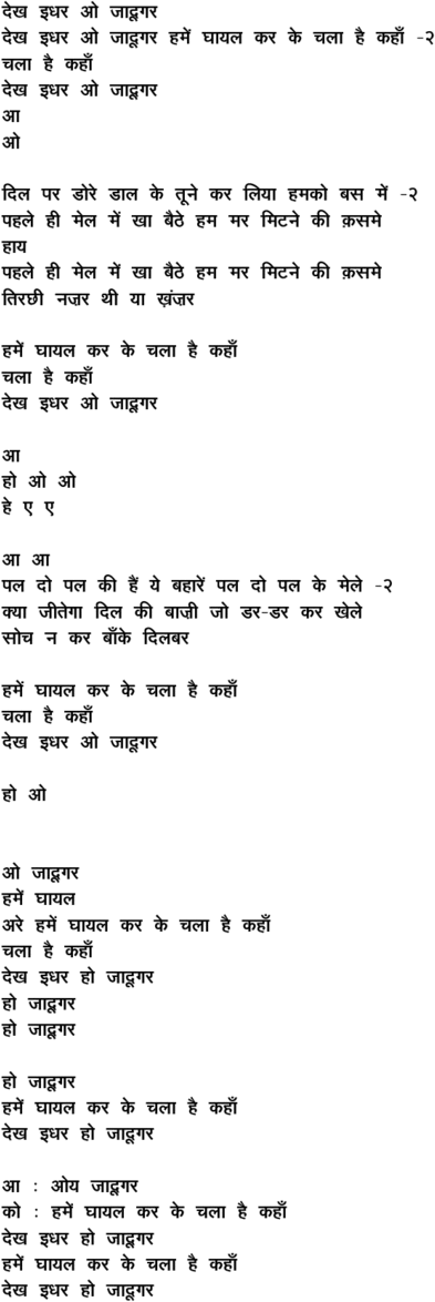 dekh idhar o jaaduugar hame.n ghaayal kar ke