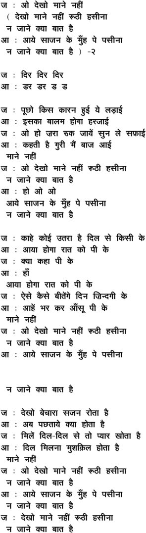 dekho maane nahii.n ruuThii hasiinaa