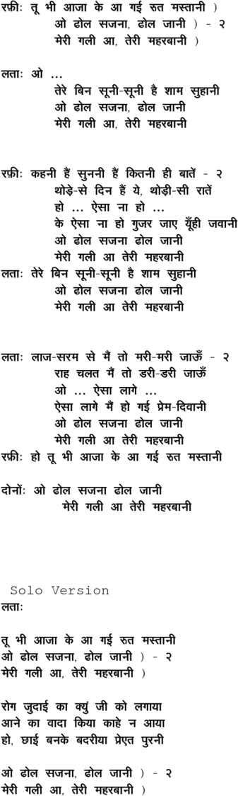 Dhol sajanaa, Dhol jaanii ... tuu bhii aajaa ke aa ga_ii rut mastaanii