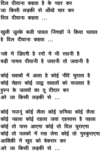 dil diivaanaa kahataa hai ke pyaar kar