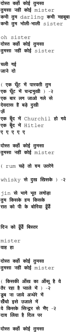 dost kahaa.N ko_ii tumasaa tumasaa nahii.n ko_ii ##mister##