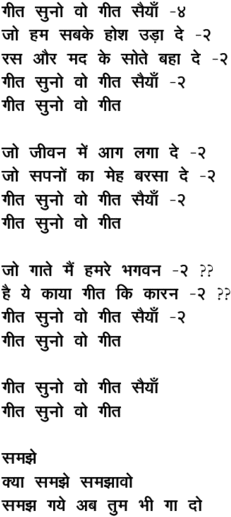 % Song Courtesy: http://hindi-movies-songs.com/ % The name of the singer is mentioned as Ms Sheela in Kosh
