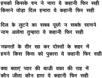 hamako kisake Gam ne maaraa ye kahaanii phir sahii - - Runa Laila
