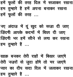hame.n phuulo.n kii tarah dil me.n sajaakar rakhanaa