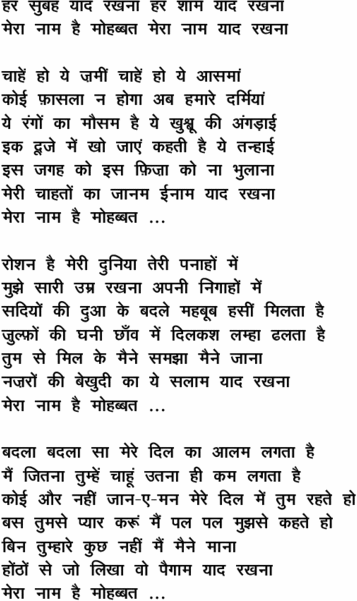har subah yaad rakhanaa ... meraa naam hai mohabbat